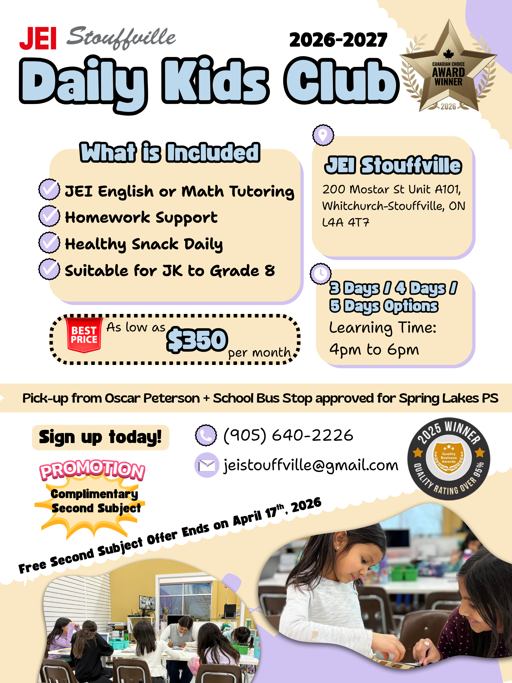 With a comprehensive academic curriculum and structured timetable, JEI Daily Kids Club is the best way to give your children the head start they need in Literacy and Math.